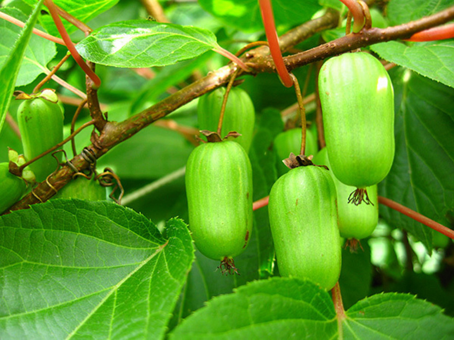 - долговечность. Плоды актинидии Сентябрьская на вкус приятно-кислые, имеют выразительный аромат. На протяжении года листья лианы меняют свой цвет от бронзового весной до малиново-красного поздней осенью.