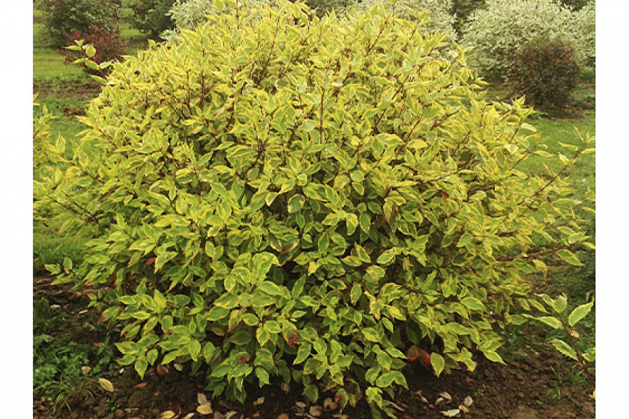 Саженцы дерена белого Гоучалти (Gauchaultii) – оригинальное украшение в ландшафтном дизайне, так как имеют необычную пеструю окраску листьев (желтые пятна и розовую кайму). Саженцы и крупномеры высаживают: