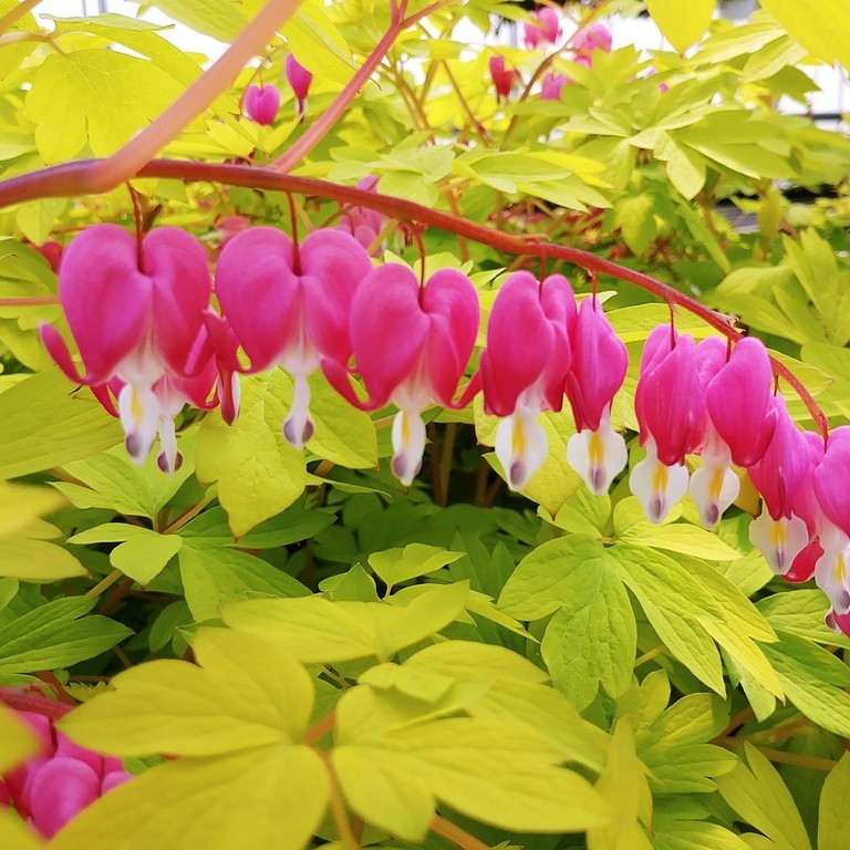 Рассада Дицентры великолепной Gold Heart (Голд Харт) усеяна ажурными желто-зелеными листьями. Формирует среднего размера куст высотой до 100 см. Растение зимостойкое, однако чувствительно к солнечным ожогам. Украсит любой весенний цветник необыкновенным сочетанием золотистых листьев с яркими дорожками элегантных розовых сердцеподобных цветков, подрагивающих от ветерка. Цветет около месяца в конце весны, затем вся наземная зеленая масса отмирает. Семена используют при выведении нового сорта.