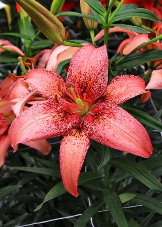 Луковицы Лилии азиатской Морфо Пинк (Lilium asiatic Morpho Pink) относятся к тем сортам, которые больше всего ценятся цветоводами-гурманами за оригинальный внешний вид. На высоком (до 1 метра в высоту) цветоносе распускаются цветки удивительного лососево-розового цвета с редким, но крупным темным крапом и нежно-розовым румянцем. Лепестки с атласной текстурой изящно подкручены концами вниз, что делает лилию особенно изящной. Морфо Пинк отлично адаптирована к климатическим особенностям средней полосы России и приспособлена к суровой зимовке.