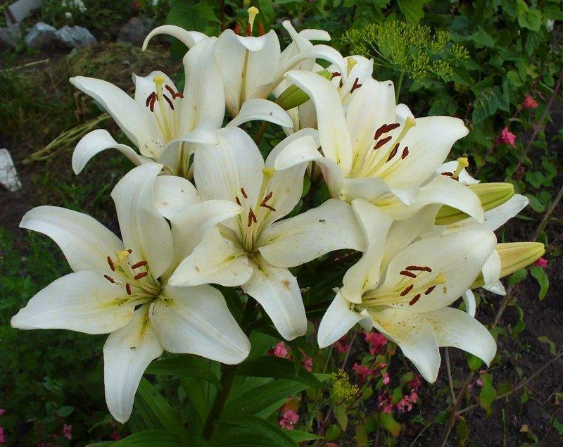 Саженцы и рассада Лилии ЛА-Гибрид Брайт Даймонд (Lilium) окажутся настоящим бриллиантом в ожерелье вашего цветника. Впрочем, даже название этого голландского гибрида можно перевести как «Яркий алмаз». Среди своих собратьев разновидность отличается удивительно чистым, белым цветом лепестков, на фоне которых выделяются крупные чёрные пыльники.