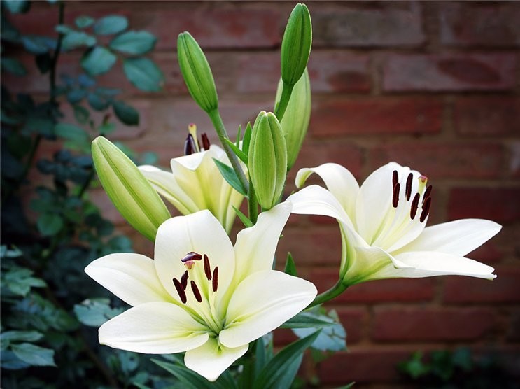 Саженцы и рассада лилии ла-гибрид Курьер (Lilium) будут эффектно выглядеть во время цветения в ландшафтных композициях. Цветки диаметром 20 см раскрываются в июле-августе, источают тонкий приятный аромат и великолепно смотрятся на фоне яркой летней зелени. Бело-кремовые нежные лепестки становятся желтовато-зелеными ближе к центру. На светлом фоне красиво выделяются темно-коричневые пыльники тычинок.